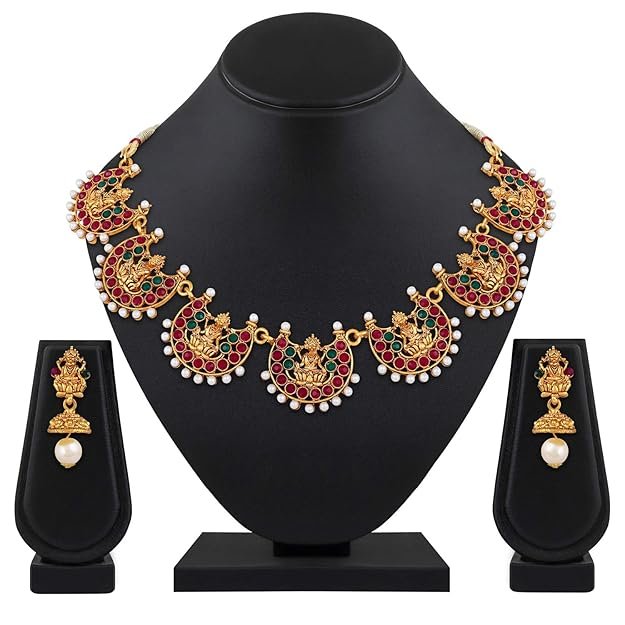 18k Gold Plated Traditional Temple Choker Necklace Wedding Party Stylish Jewellery Set